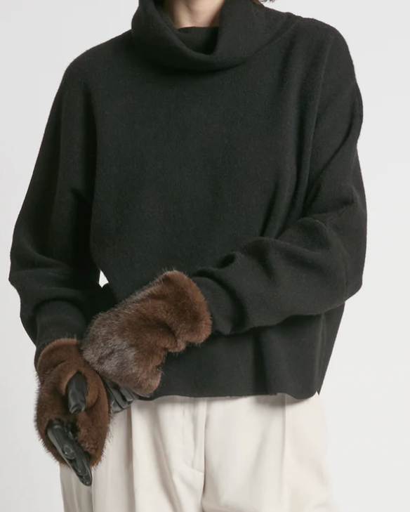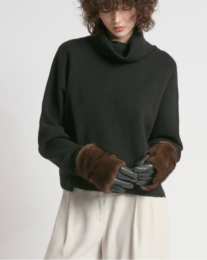 Faux Fur Overlay Gloves in Brown