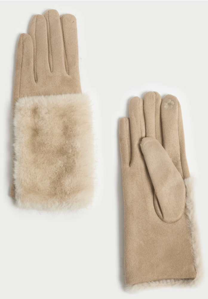 Gradiant Fur Suede Gloves in Cream